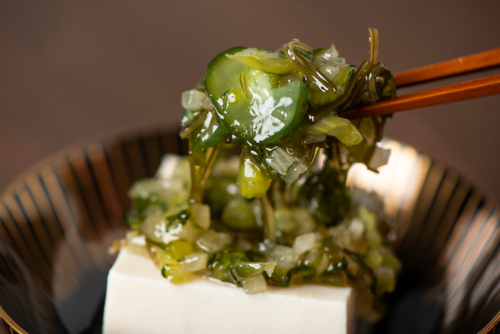 きざみ野菜に昆布がとろり、わさびがきりり!