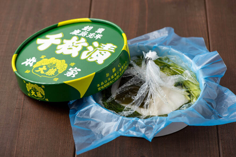【千枚漬】280g 【大藤の九条ねぎ味噌】80g 【半割大根】1/2本 【日の菜】1本 【きざみすぐき】60g |